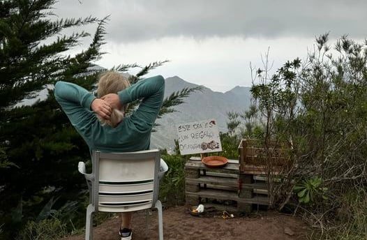 Sunkiai užkilome ant kalno ir pradėjus leistis-šis užrašas su kėde: ”Ši diena yra dovana. Mėgaukis”. Mėgaujamės:) #terapija #Tenerifė #kalnai